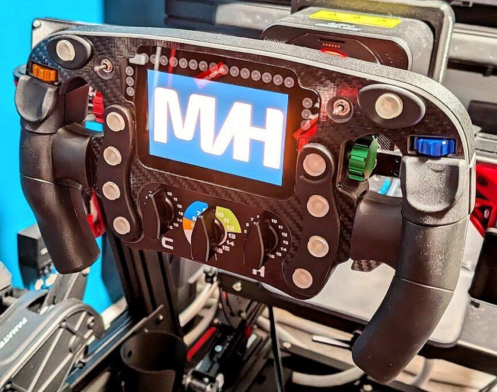 Your telemetry, your way. At the heart of the wheel is a crisp Vocore display, fully powered by SimHub.